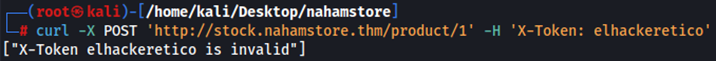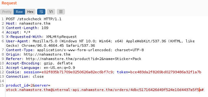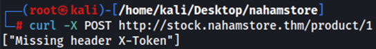 Si cambiamos el valor de server= por otro de los subdominios disponibles, nos devuelve un error. Debemos mantener el subdominio stock.nahamstore.thm y buscar como eludir.