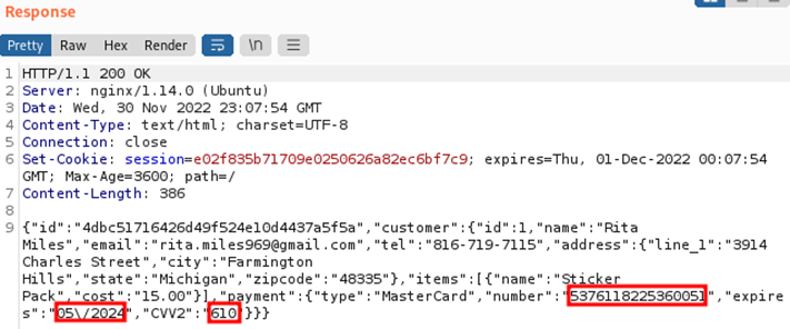 Y tendríamos información sobre el usuario (nombre, email, tarjeta…)