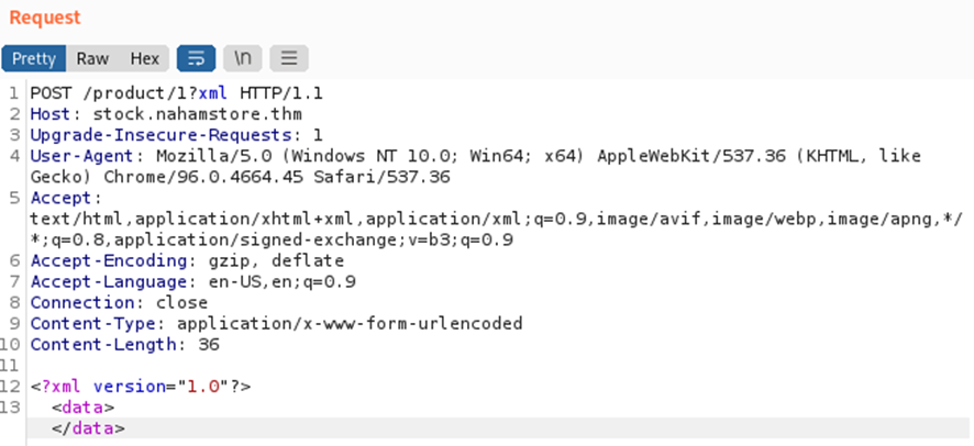 Dado que el valor que proporcionamos se refleja, vamos a realizar un ataque XXE. Vamos a enviar una solicitud con el siguiente payload.