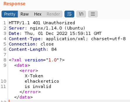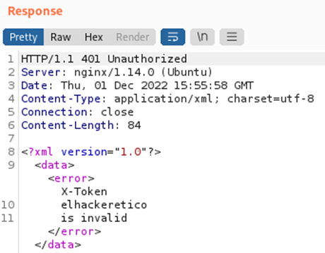 El error nos indica que no proporcionamos X-Token aunque el encabezado HTTP este presente. ¿Qué significa esto? Pues que en el modo XML, el encabezado HTTP se ignora y espera un valor XML.